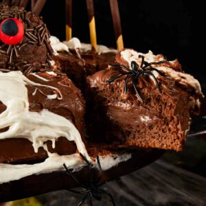 - Serve and Enjoy. Slice through the web, reveal those rich chocolate layers, and serve! Watch your guests’ faces light up (and maybe shiver a little).
