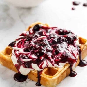 Then there’s that creamy cheesecake topping that takes things to the next level. When paired with homemade blueberry sauce, it turns this easy blueberry lemon waffles recipe into something truly special, like a bakery-style treat made right in your own kitchen.