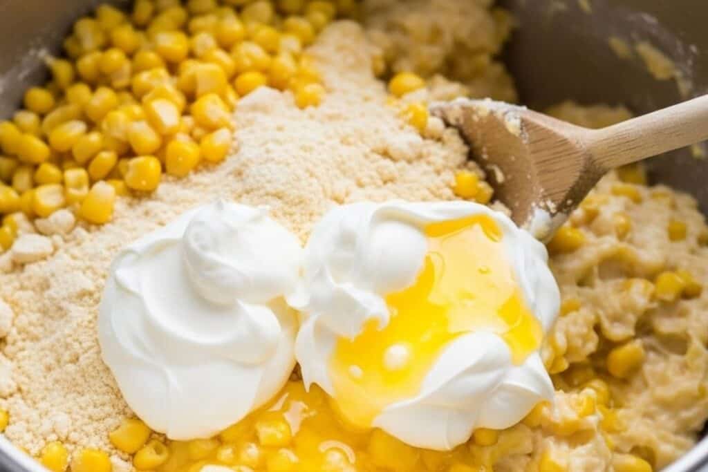 - Mix the Base: In a large mixing bowl, combine corn, creamed corn, corn muffin mix, sour cream, and melted butter until evenly blended.