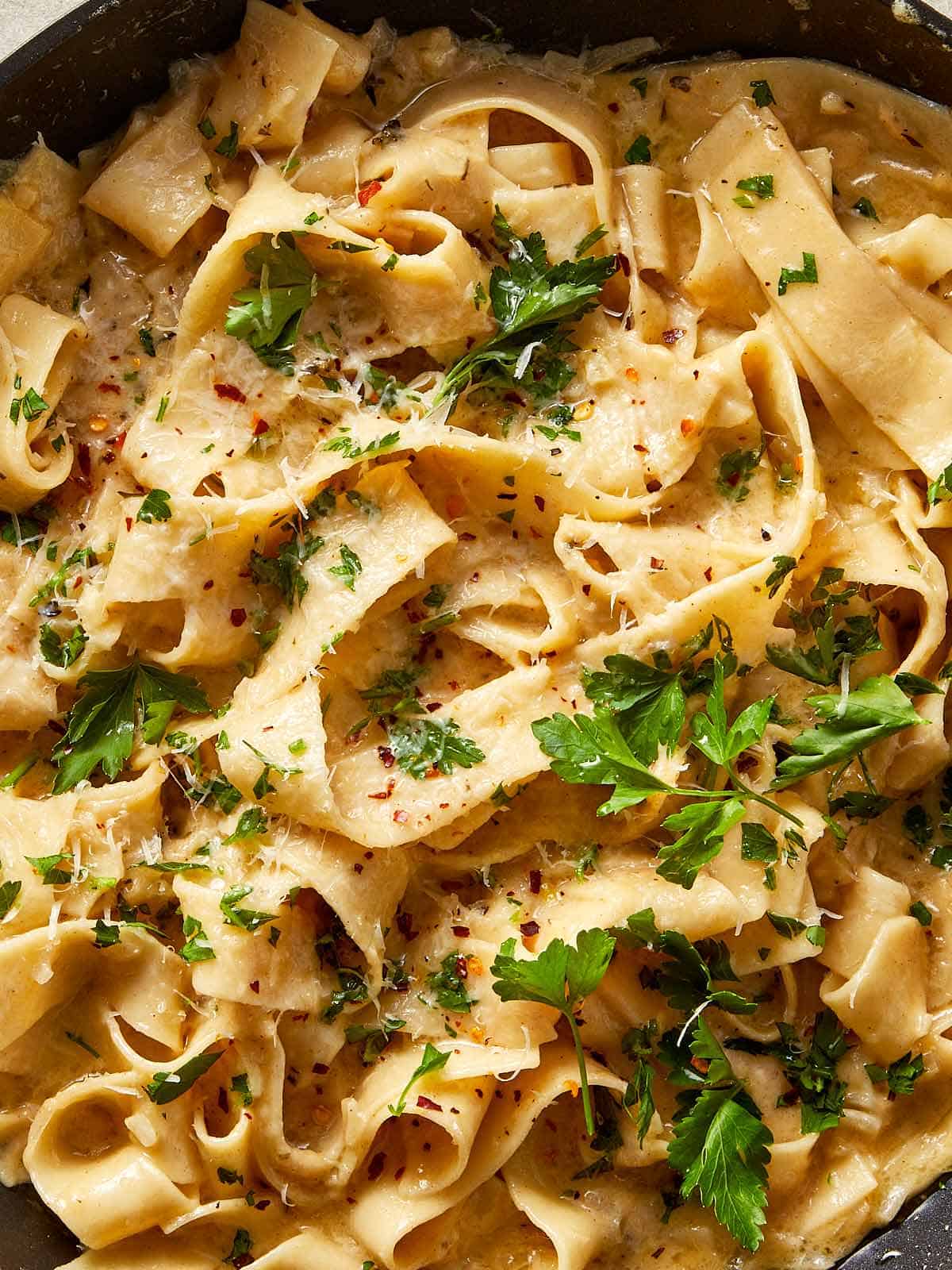 Browning the butter is what changes the whole sauce, creating a deeper flavor than the original Alfredo sauce. The same vibe, almost the same sauce, but WAY lighter. Ready in less than 30 minutes.