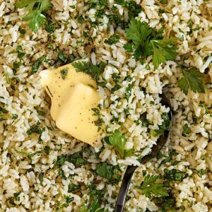 - Fluff rice with a fork. Stir through remaining butter and season with a little extra salt, pepper and dried parsley.