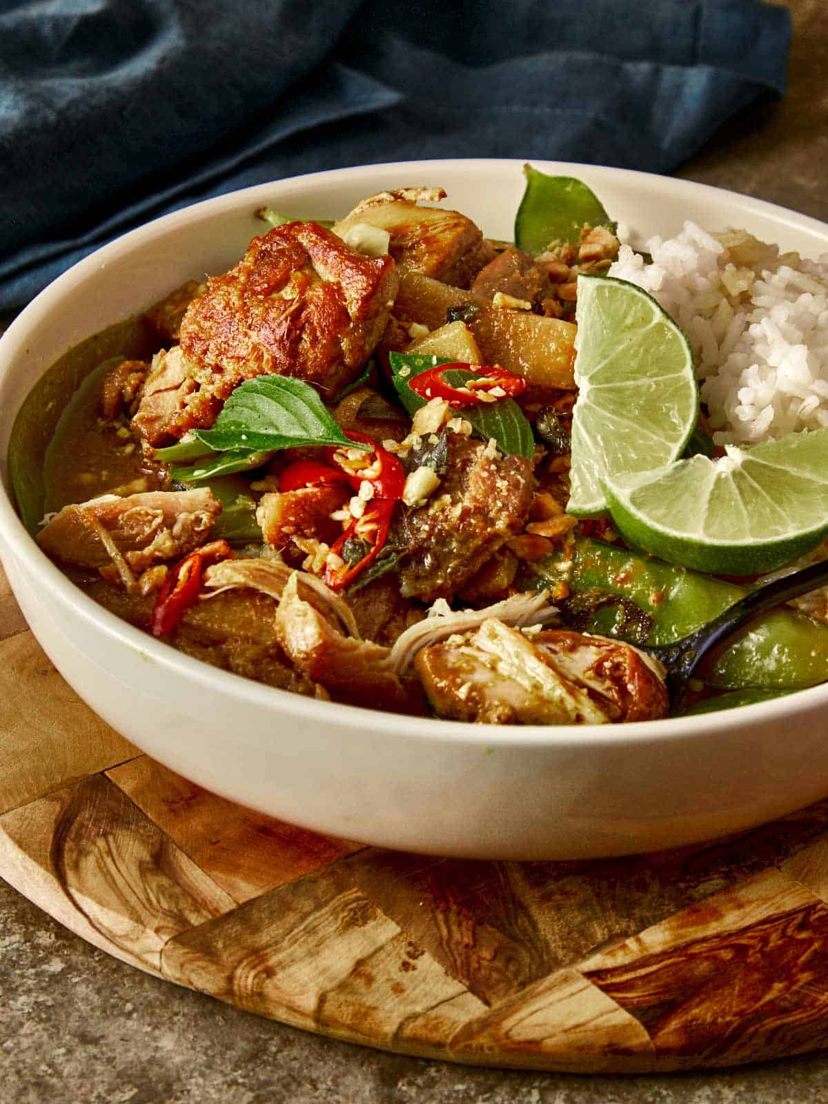 Of course you need some sides with this like my Garlic butter Rice, Fried Rice With Bacon, Buttery Sautéed Green Bean Recipe, Cheesy Garlic Roasted Asparagus. If you want to make this authentic, serve this with jasmine rice, as it’s the most aromatic, perfectly sticky and fluffy at the same time. Some street vendors in thailand serve this curry with kanom jeen. This is a type of Thai rice noodle that looks like thin vermicelli noodles and are chewy to eat, a great alternative to traditional rice.